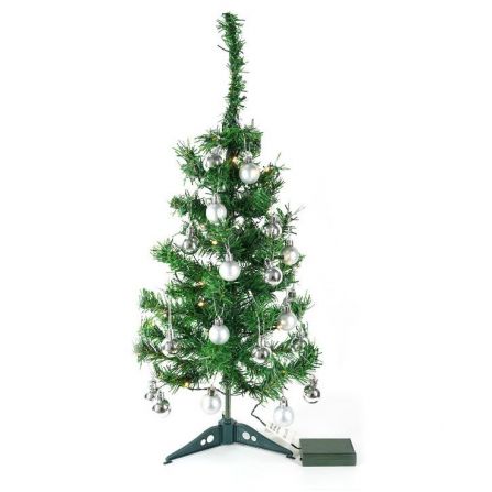 Brad Artificial Impodobit, 60cm, Suport Plastic cu Instalatie Luminoasa 20 Led Alb Cald + 20 Globuri Argintii Incluse, Emazing