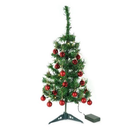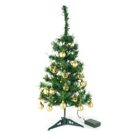 Brad Artificial Impodobit, 60cm, Suport Plastic cu Instalatie Luminoasa 20 Led Alb Cald + 20 Globuri Aurii Incluse, eMazing