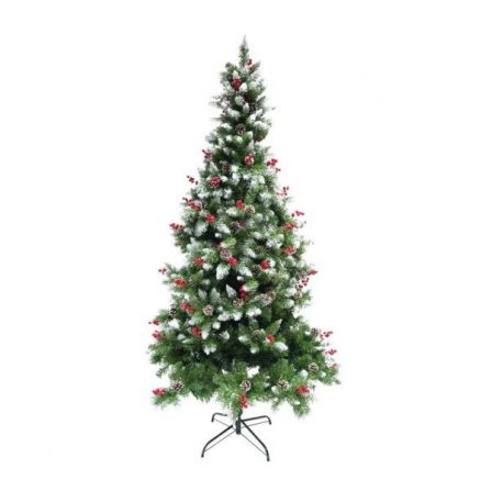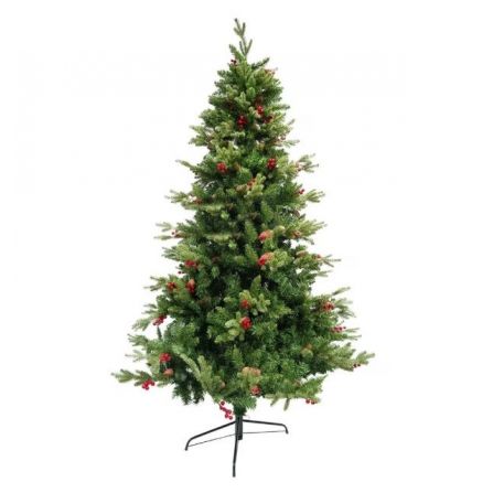 Brad Artificial, eMazing Decorat cu Conuri Pin, Merisoare si Suport Metalic, Inaltime150cm, diametru 104, 323 ramuri