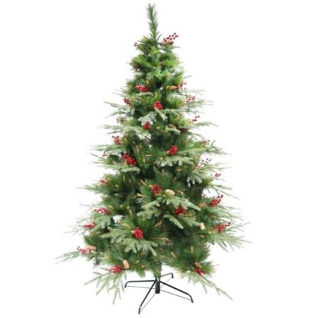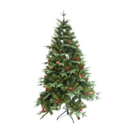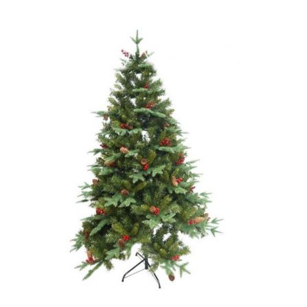 Brad Artificial, eMazing Decorat cu Conuri Pin, Merisoare si Suport Metalic, Inaltime 180 cm, 774 ramuri