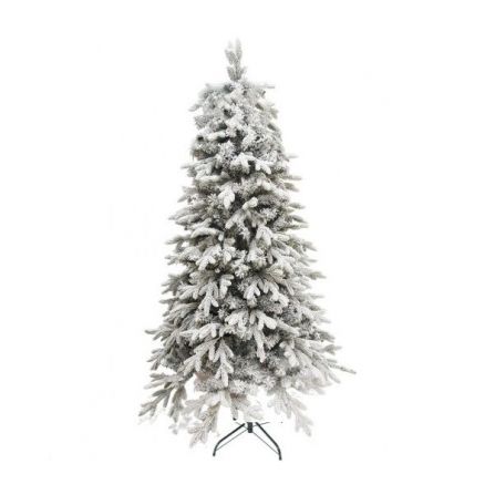 Brad Artificial de Craciun, e-Mazing, 1.8 m inaltime, Verde, Pulverizat complet alb-tip zapada, Interior/ Exterior, Ramuri bogate, 512...