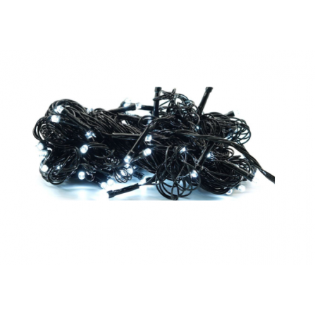 Instalatie de Craciun liniara eMazing, 10 M, din care 1 M cablu priza 220v, 100 LED, 8 jocuri de lumini, controler, fir negru, alb rece