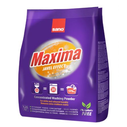 Sano Maxima Javel este un detergent pudră care conferă un parfum delicat lenjeriei și igienizează eficient rufele dumneavoastră.