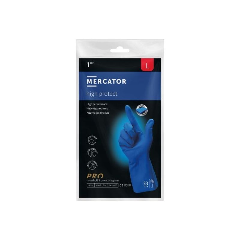 Categoria de protecție ridicată III tip A este o garanție a unei munci sigure chiar și în cel mai solicitant mediu. Mănușa se caracterizează, de asemenea, prin grosimea incomparabilă a peretelui, care asigură o protecție suplimentară, de data aceasta împotriva deteriorărilor mecanice nedorite. Materialul nitrilic este delicat pentru piele, nu conține proteine din latex, iar căptușeala moale din interiorul mănușii face ca MERCATOR® high protect să poată fi purtată pentru o perioadă foarte lungă de timp. Căptușeala flocată absoarbe parţial transpiraţia palmelor.