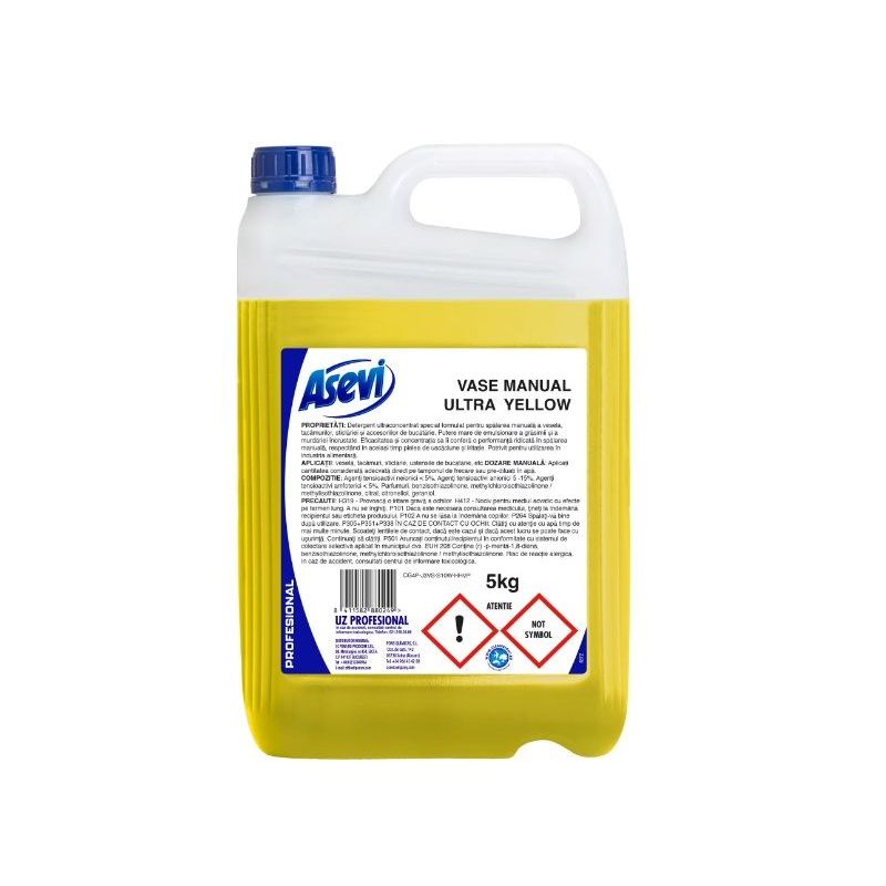ASEVI VASE MANUAL YELLOW este un detergent ultraconcentrat special formulat pentru spalarea manuala a veselei, tacamurilor, sticlariei si accesoriilor de bucatarie.