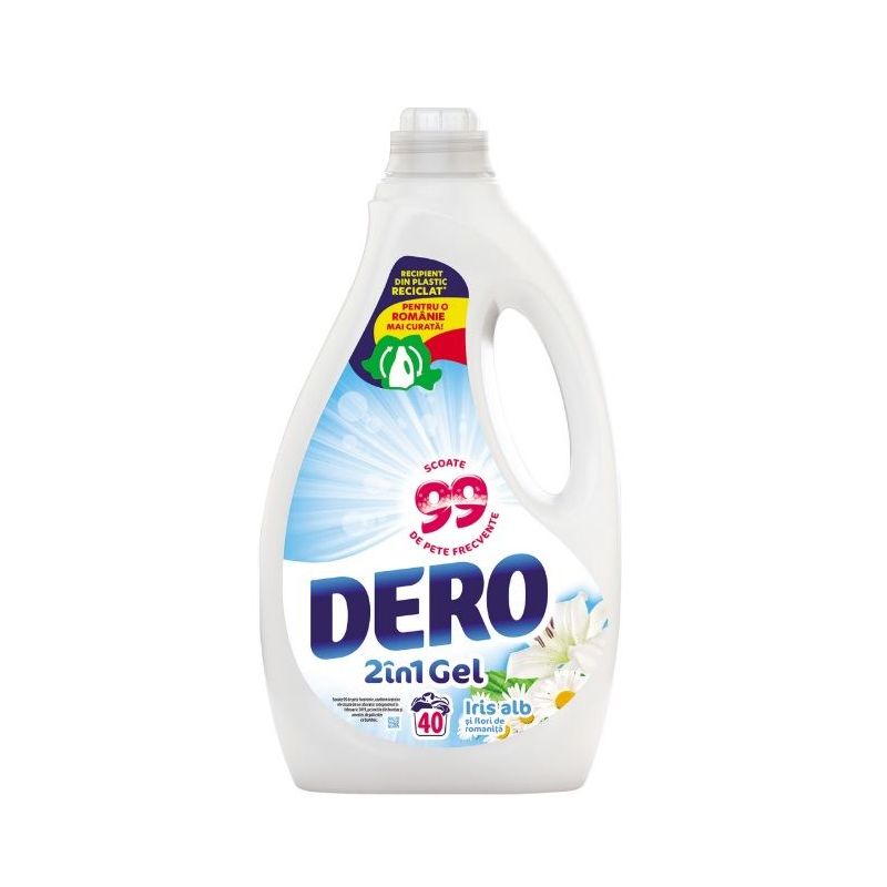 Detergent lichid Dero 2in1 Iris Alb si Flori de Romanita, 40 spalari, 2L