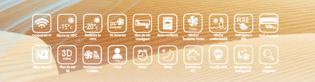 Cu ajutorul aplicatiei de pe telefonul mobil si a rooterului din incaperea puteti seta modul de functionare,temperatura si alte functii care sa va oferea climatorul dorit.