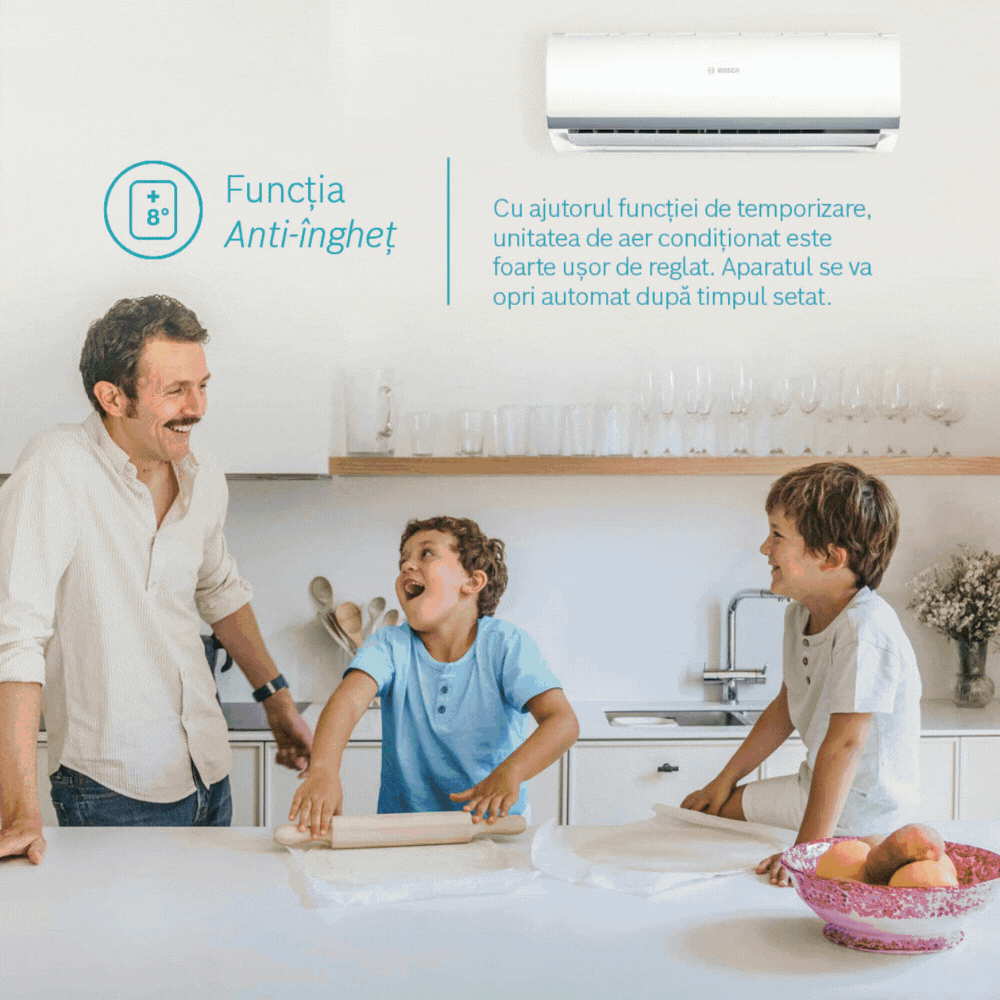 Aceasta functie se refera la capacitatea aparatului de a mentine o temperatura minima de 8 grade Celsius in incapere in timpul perioadelor reci. Astfel, atunci cand temperatura scade sub valoarea de 8 grade Celsius, aparatul porneste automat pe modul de incalzire.