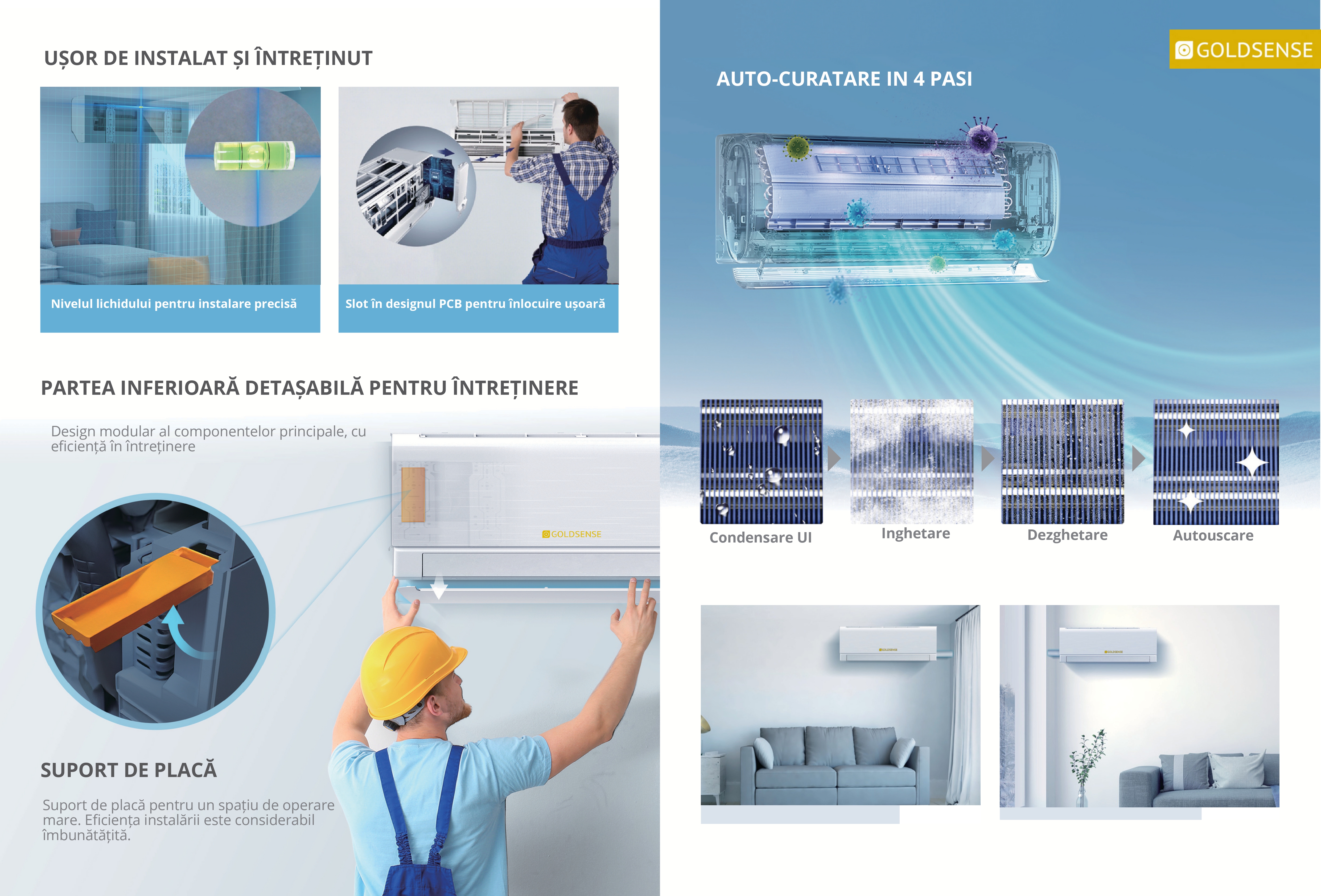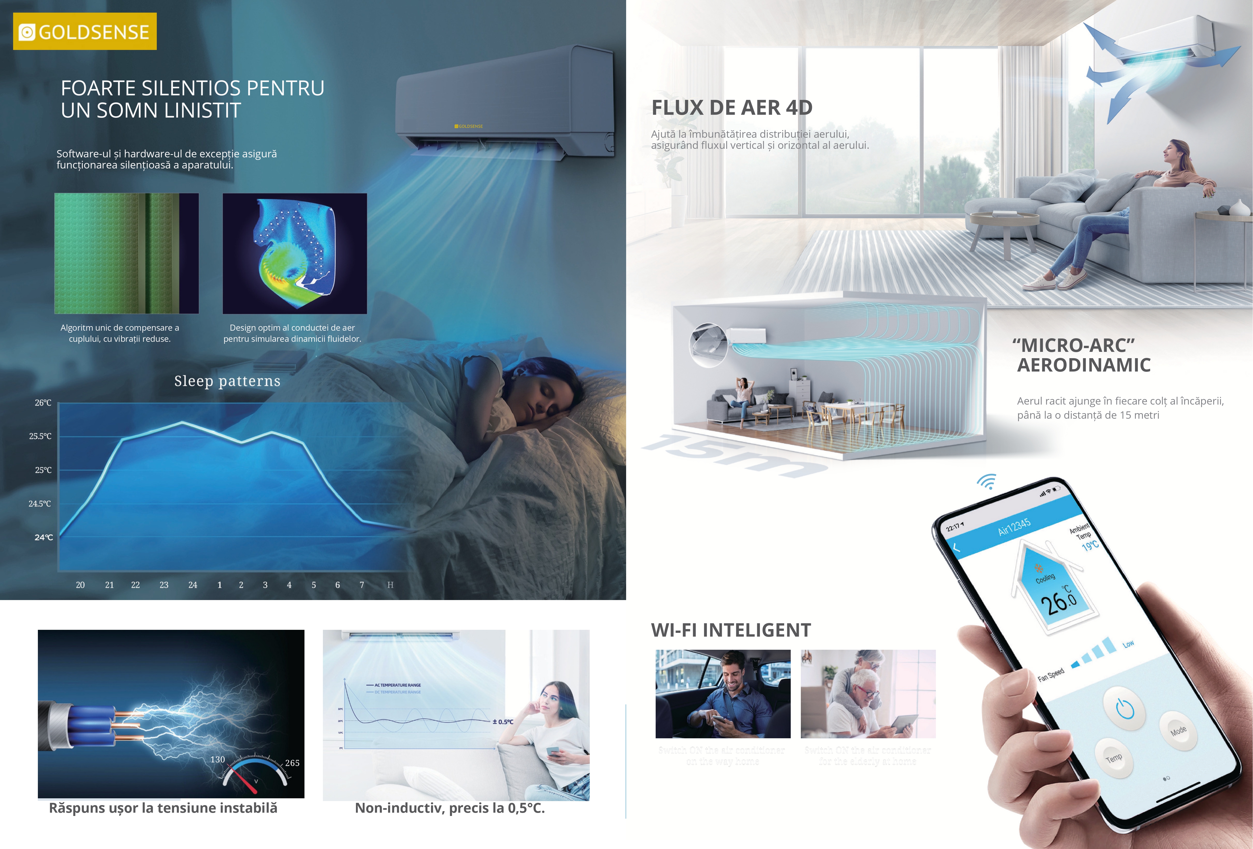 Aparat de aer conditionat Goldsense M PRO,18000 BTU/h, WiFi inclus, auto curatare, 4D AirFlow, AERODYNAMIC „MICRO-ARC”, filtru carbon