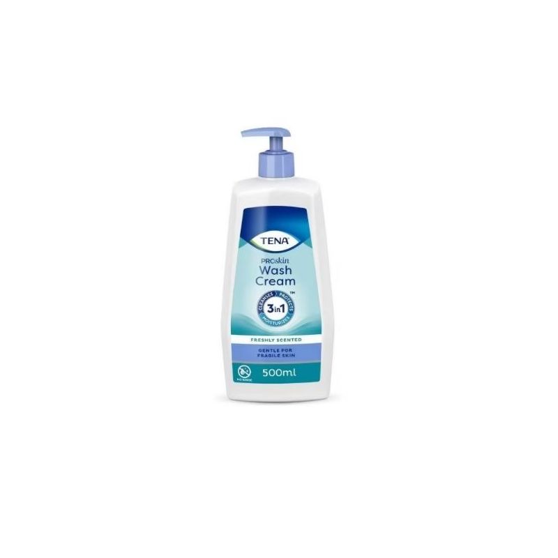 Această alternativă blândă la apă și săpun curăță, protejează și hidratează pielea fragilă îmbătrânită. Formulă confortabilă, nu este nevoie să clătiți cu apă. TENA ProSkin Wash Cream poate fi folosită la schimbarea produselor pentru incontinență sau pentru curățarea întregului corp. Crema de îngrijire este testată dermatologic, ajută la menținerea pH-ului natural al pielii și este proaspăt parfumată pentru a ajuta la controlul mirosurilor.