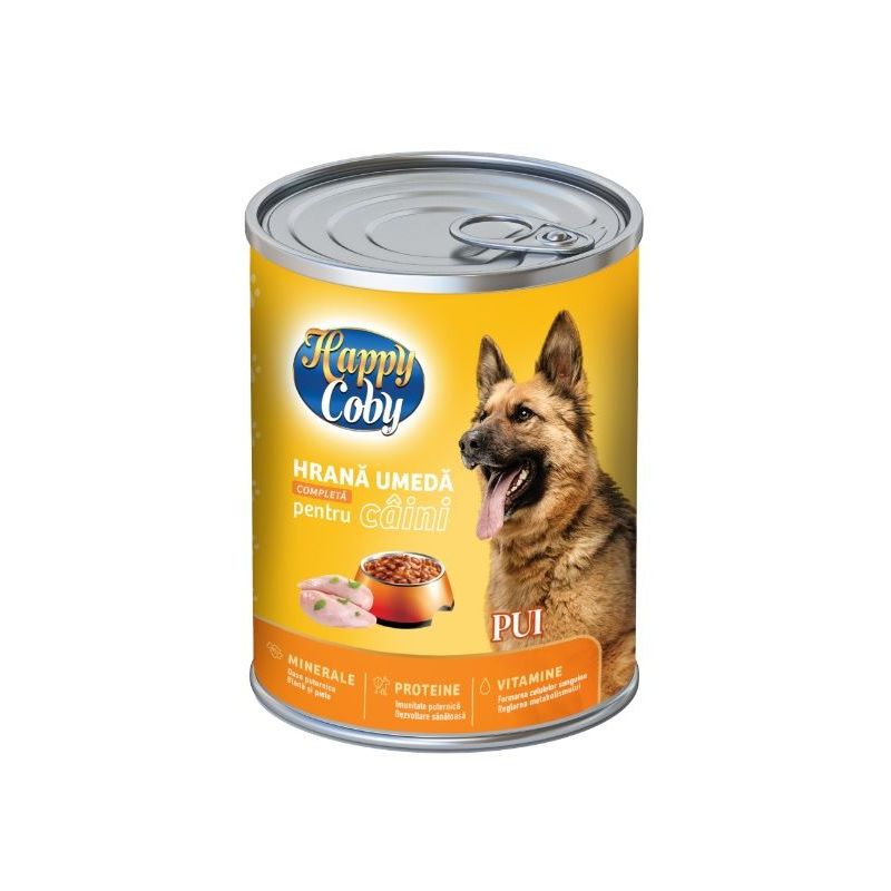 Conserva Happy are multa carne de origine animala, asigurand aportul nutritional de calitate.