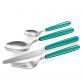 Formele unduite si culorile vibrante fac din tacamurile de masa un festin pentru ochi. Avand un aspect modern, otelul inoxidabil de inalta calitate si invelisul lucios din plastic al manerelor fac ca tacamurile sa straluceasca magnific, oferind in acelasi timp un aspect delicat si minimalist. Tacamurile creeaza o atmosfera speciala in jurul mesei fiind, in acelasi timp, o sursa de bucurie in orice zi a saptamanii. Tacamurile pot fi spalate, in conditii de siguranta, in masina de spalat vase. A nu se lasa la indemana copiilor fara supraveghere din partea unui adult.