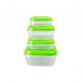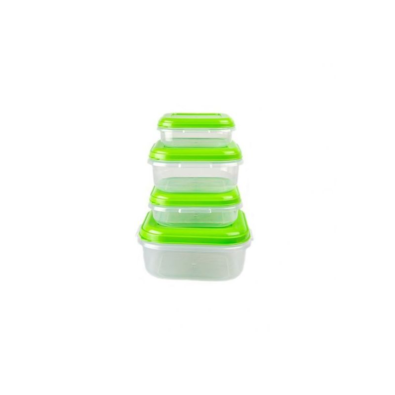 Setul de cutii patrate de alimente din plastic rezistent, de dimensiuni diferite si capace ce asigura o inchidere usoara si sigura, este ideal pentru a va mentine frigiderul organizat si fara mirosuri. De asemenea, este perfect pentru a lua cu dumneavoastra gustarea sau mancarea preferata, oriunde v-ati afla. Cutiile au manere practice, usurand transportul in momentul in care continutul acestora este cald. Plasticul transparent va ajuta sa identificati foarte usor continutul cutiei. Cutiile sunt usor stivuibile pentru o depozitare usoara.